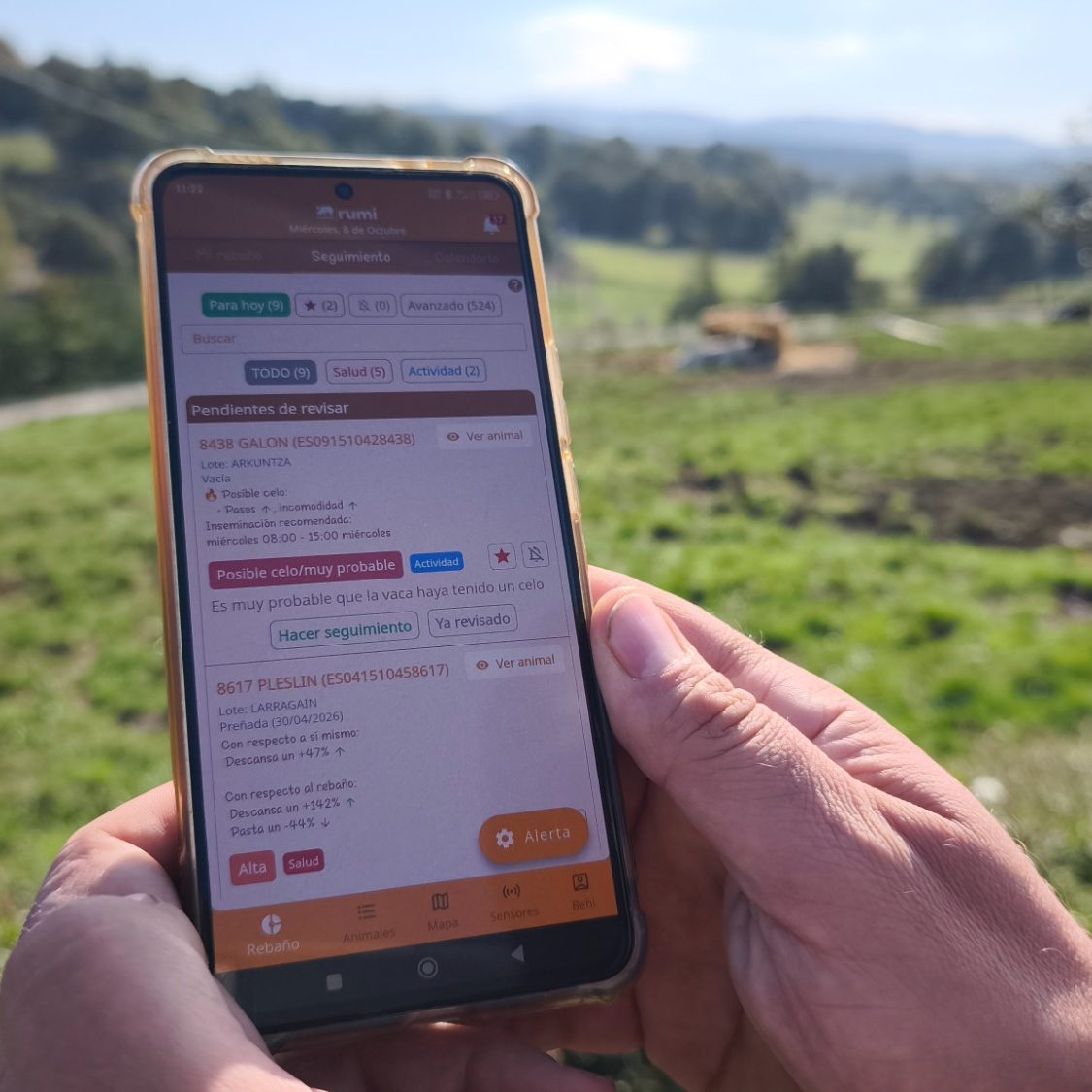 Se trata de una tecnología innovadora para la monitorización del bienestar animal, mediante un collar inteligente con GPS + acelerómetro, lo que permite medir el comportamiento animal (pastar, rumiar, descansar…). Además permite alertas en tiempo real y trazabilidad certificable.